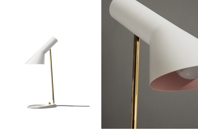 1957年にコペンハーゲンのSASロイヤルホテル(現ラディソン・コレクション・ロイヤル・ホテル)のためにアーネ・ヤコブセンによってデザインされた「AJランプ」シリーズ。直線、直角、斜角を組み合わせたミニマルなデザインは、半世紀経ってもなお新鮮さを感じさせます。マットホワイト×ペールローズ色の組み合わせが空間を優しく照らします。