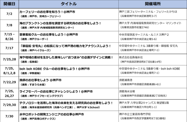 ※内容は、一部変更になる場合がございます。最新情報は、公式サイト( https://iko-yo.net/topics/kodomowork_kobe )をご覧ください。