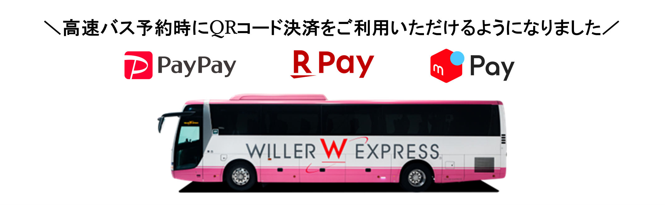 WILLER MARKETING株式会社(本社:大阪府大阪市、代表取締役社長:辻本 宗男)は、移動予約サイト「WILLER TRAVEL」(以下「WILLERサイト」)の高速バス予約において、新たにQRコード決済3ブランド(「PayPay」「楽天ペイ」「メルペイ」) の取り扱いを、本日2025年11月4日(火)より開始します(※1)。