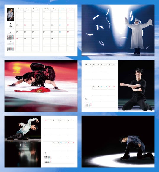 「月間スケジュール+週間スケジュール」という構成で、各見開きページに羽生結弦さんのさまざまなシーン約100点を掲載(※)。まるで小さな写真集のような趣を持つスケジュール手帳です。