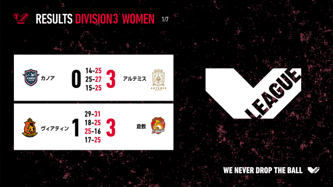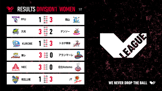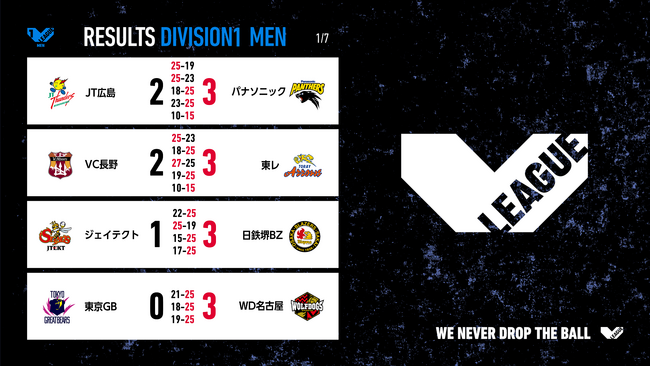 バレーボール国内最高峰リーグ V.LEAGUE【1月7日の試合結果】