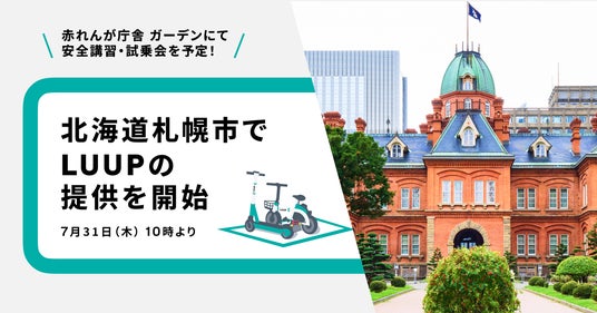 株式会社Luup(本社:東京都品川区、代表取締役CEO:岡井大輝、以下「Luup」)は、2025年7月31日(木)10時より、北海道札幌市にて電動キックボードと電動アシスト自転車の「電動マイクロモビリティ」のシェアリングサービス「LUUP(ループ)」の提供を開始します。サービス開始初日には赤れんが庁舎 ガーデン(所在地:札幌市中央区北3条西6丁目1番地)にて、メディア向け発表会を開催します。また同日には、東京海上ホールディングス株式会社(本社:東京都千代田区、取締役社長グループCEO:小池昌洋) 、北海道警察と連携し、一般の皆様を対象とした安全講習・試乗会を実施します。さらに新エリア開始を記念し、札幌限定で「LUUP」のライド料金がだれでも全員30分間何度でも無料になる「乗り放題キャンペーン」を7月31日(木)から8月9日(土)まで開催する予定です。