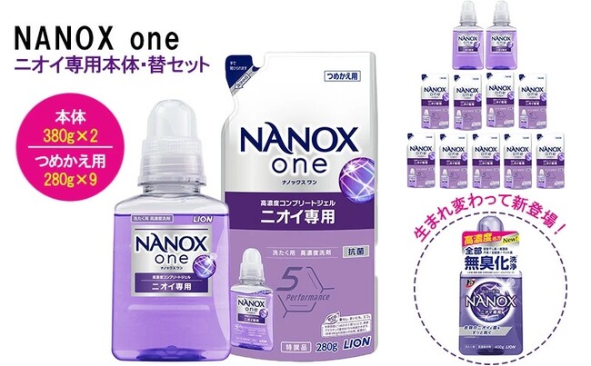 ライオン社は、同社の従来洗剤では実現できなかった「高い洗浄・消臭力」と「衣類本来の色を保つ機能」を両立させた高濃度コンプリートジェル『NANOX one(ナノックス ワン)』3タイプを9月に発売。このうち、部屋干し臭などイヤなニオイを抑制する「新消臭成分」が特長の『NANOX one ニオイ専用』と、皮脂や食べこぼしなど頑固な汚れにも高い洗浄力を発揮する『NANOX one Pro』の2タイプがそれぞれ堺市のふるさと納税返礼品となりました。