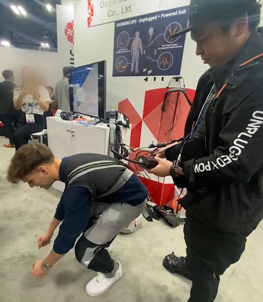 更に、CES2024で紹介し大好評だったアシストスーツをデザイン性、装着性、利便性を向上させて展示します。こちらは空気圧人工筋によるアクティブな支援が出来る、まるで衣服のように軽量柔軟なアシストスーツです。主に荷物の持ち上げ時に背中から腰にかけて筋肉を支援します。実際に会場で着用する事も可能です。是非会場でご体感ください。