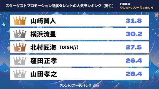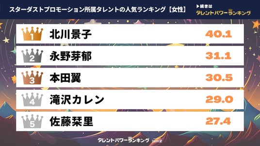 『タレントパワーランキング』では、タレントパワーランキングに登録されているスターダストプロモーションに所属するタレントのスコアを調査。