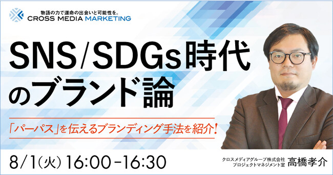 株式会社クロスメディア・マーケティング(本社:東京都渋谷区、代表取締役 美濃部哲也、以下クロスメディア・マーケティング)は、企業のPR担当者、広報担当者向けに「SNS/SDGs時代のブランドとは」実践ブランディングセミナーを、2023年8月1日(火)16:00よりオンラインにて開催いたします。