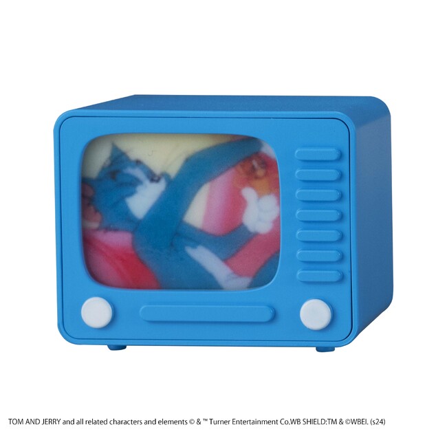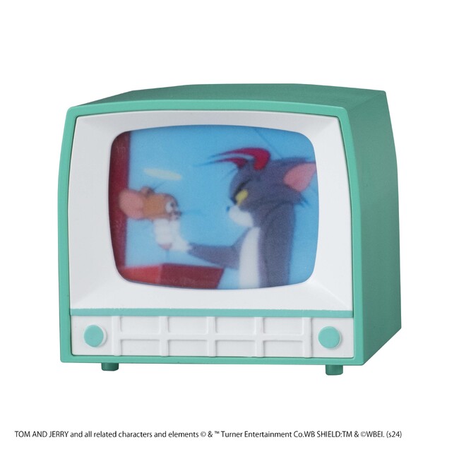 本商品は、「トムとジェリー」のイラストがデザインされたレトロなTV型フィギュアで、スイッチをONにすると実際にTV画面が光る仕様です。