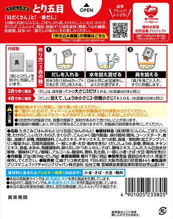 ■ 「炊き込み御膳 とり五目」商品パッケージの裏面