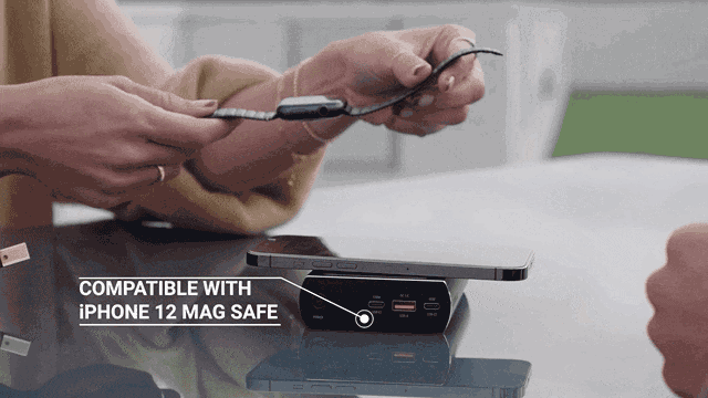 USB-Cポートの他、出力22.5Wの「USB-A」、出力15Wの「MagSafe対応ワイヤレスチャージャー」、出力2.5Wの「Apple Watch専用チャージャー」をそれぞれ1つずつ装備しています。iPhoneやApple watchのワイヤレス充電にも対応しており、最大5デバイスまで同時に充電が可能です。