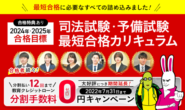 司法試験対策も万全。予備試験合格者へ20万円分の司法試験講座プレゼント!