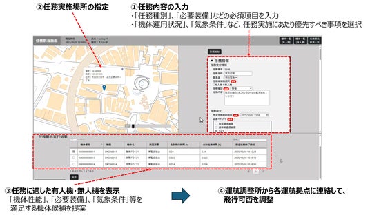 - 割り当てられた任務を、無人機を飛行させるオペレータに連携