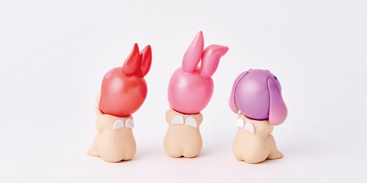 (左)Love Red Rabbit/ラブ レッド ラビット、(中)Love Pink Rabbit/ラブ ピンクラビット、(右)Love Lop Ear Rabbit/ラブ ロップイヤーラビット