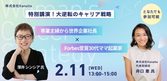 株式会社Kanatta(本社:東京都目黒区、代表取締役社長:井口 恵)は、2026年2月11日、これまでの価値観を刷新し「いつでも、どこからでも人生は変えられる」というメッセージをテーマにしたトークイベント 「大逆転のキャリア戦略!」 を開催いたします。