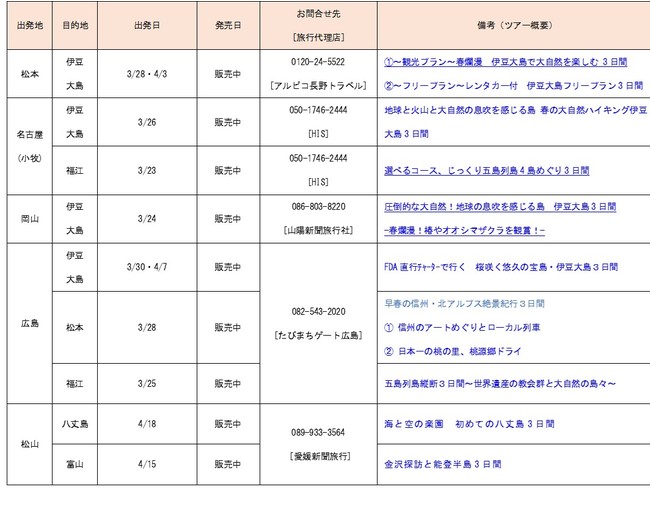現在販売中の『チャーターツアー』、『遊覧フライト』について、お知らせいたします。