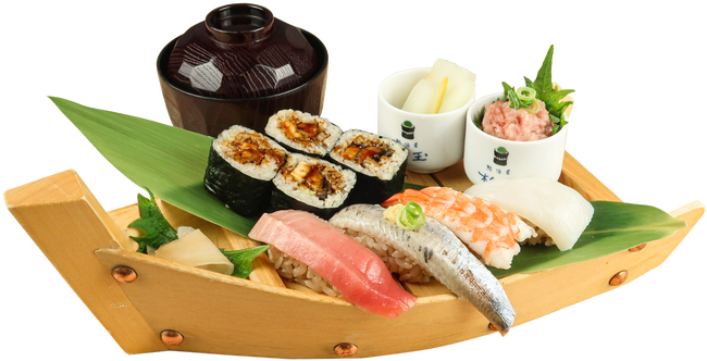 ■内 容:いわし・イカ(塩レモン)・海老・中とろ・[中太巻き]うな玉