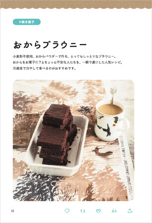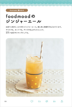 316万回表示の「おからブラウニー」、104万回表示の「いちごソースの豆花(トウファ)風」、2.8万いいねの「ふつうのクッキー」、2.5万いいねの「大好きなスコーン」…などなど、ツイッターで爆発的に支持されたレシピを厳選して掲載。そのほか新作レシピ、ファン垂涎の「foodmoodのジンジャーエール」のレシピも大公開します。