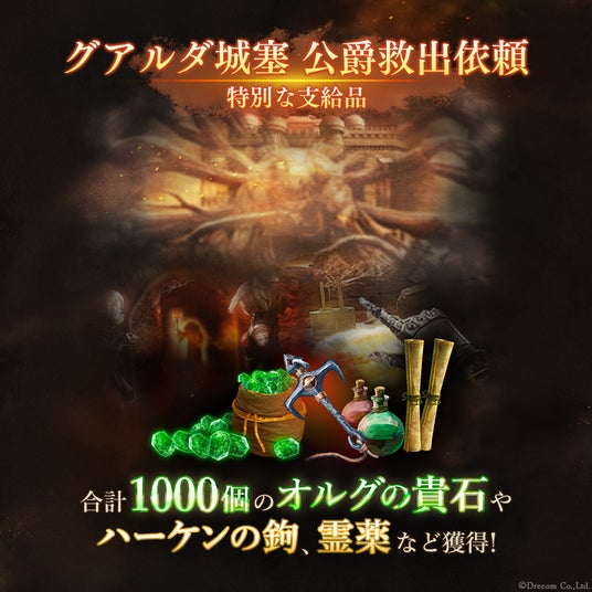 開幕を記念し、合計1,000個のオルグの貴石などが受け取れる「グアルダ城塞 公爵救出依頼 特別な支給品」や、期間限定ミッション「難攻不落のグアルダ城塞 MISSION」を開催いたします。
