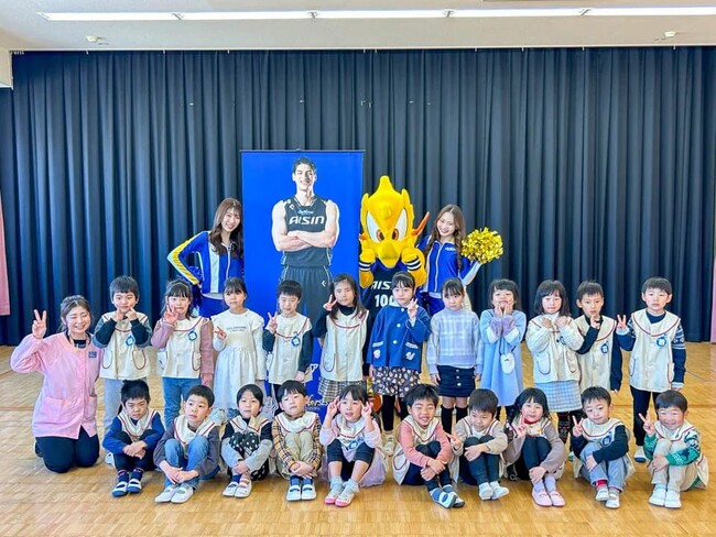 2024年2月6日(火)、シーホースくんとSuper GirlsのHIBIYU、RIOが二本木保育園(安城市)を訪問し、園児の皆さんと一緒にクイズやダンスを楽しみました。
