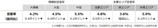 空室率は前月比マイナス0.07ポイントの4.55%となり、3ヵ月連続で小幅に低下した。ビルグレード改善が目的の移転等で空室消化が進んでいる。エリア別では「名駅」が前月比マイナス0.5ポイントの大幅な低下となった。潜在空室率は前月比マイナス0.16ポイントの6.18%だった。