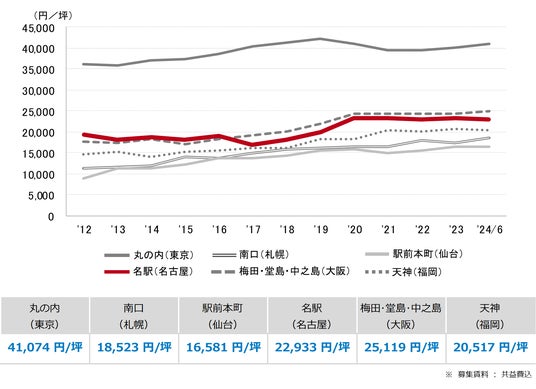 三幸エステート株式会社(本社:東京都中央区、取締役社長:武井重夫)は、2024年6月度の名古屋市オフィス賃貸状況(空室率&現空面積:全規模、募集賃料&募集面積:全規模、規模別空室率、主要エリア※1空室率:全規模)および全国6大都市(東京・札幌・仙台・名古屋・大阪・福岡)の大規模ビルのマーケットデータをまとめた「オフィスマーケット2024年7月号名古屋」を公表します。