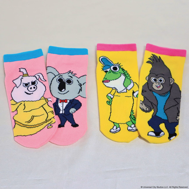 今回のコラボアイテムは、映画『SING/シング』シリーズに登場するコアラの主人公「バスター・ムーン」を中心としたパワフルかつソウルフルなキャラクターの個性が際立つ全13アイテムを揃えました。登場キャラクターたちが大集合した台形ポーチやエコバッグは、映画のハッピーな世界観を反映し、カラフルでポップなデザインに仕上げています。またソックスの商品は、「ガンター」&「バスター・ムーン」と「ジョニー」&「ミス・クローリー」と左右柄違いのデザインを取り入れ、キュートな目を引くリブカラーを採用しました。