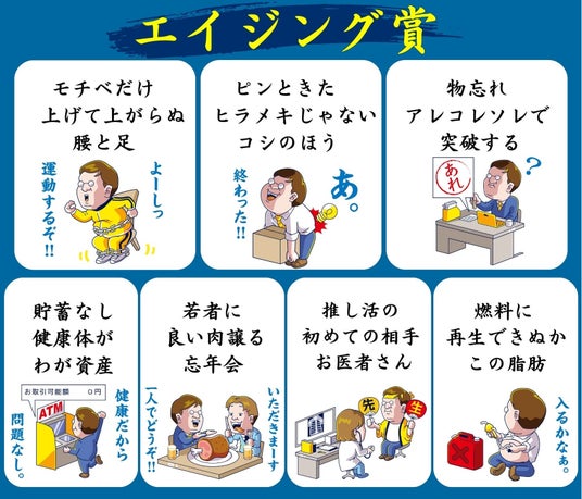 当社が考える"健康"とは、カラダの一部だけが良好な状態であることではありません。運動器、消化器、呼吸器などさまざまな器官が相互に影響し合い、バランスを保つことで全体的な健康を維持しています。この関わりを当社は「ヒューマンダイヤモンド」と名付けています。この考えに基づき、今回新たに「エイジング賞」を設けました。エイジング賞では、年齢を重ねることで感じるさまざまなカラダの器官の変化を単なる衰えではなく、前向きに受け止める姿勢を川柳で表現した作品を選定しました。
