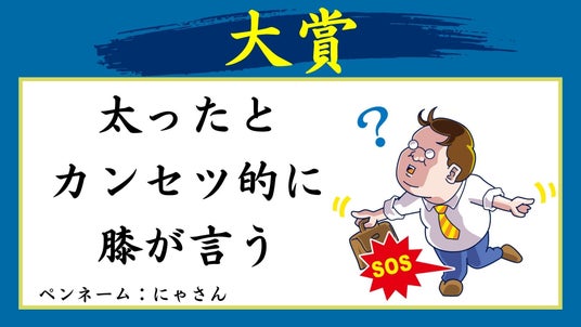 体重増加に伴うカラダの変化への気づきを、「カンセツ(関節・間接)」という言葉遊びを交えながらユーモアたっぷりに表現している点が印象的な作品です。日常生活で経験する身近な「あるある」を表現しており、多くの方に共感いただける作品だと考えたため、大賞に選定しました。