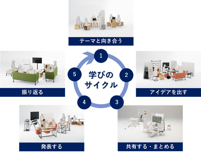 “学びのサイクル”に合わせて学生が自由に使えるグループワーク用家具、既存のオフィス向けシリーズを拡充