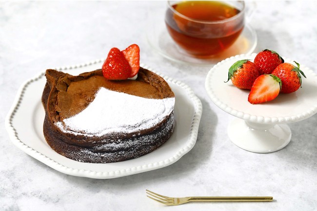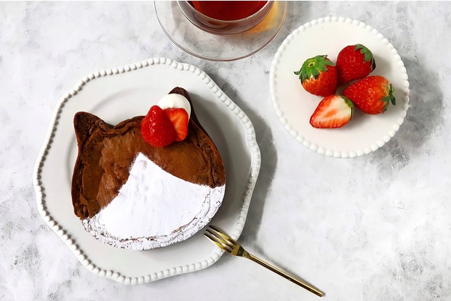 2022年2月22日は"ニャーニャー"の語呂合わせで「ねこの日」。そんなねこの日に合わせて、ねこをモチーフにしたスイーツ「ハチワレねこショコラ」が期間限定で登場いたします。チョコのレートの濃厚な甘みを感じるガトーショコラに、粉糖でデコレーションしてハチワレ柄のねこちゃんに。真っ赤な苺の飾りを乗せて、愛らしく仕上げました。