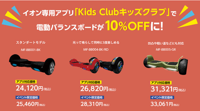 イオンモールキッズクラブ会員様MEISTER.Fクーポン使用で電動バランスボード10%オフ