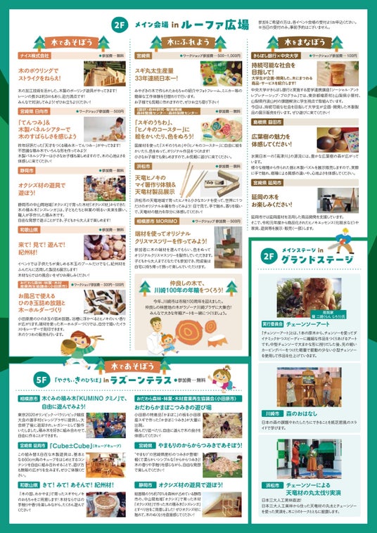 川崎市「優しい木と緑のひろば」は、森の少ない川崎市が市民に対し国が進める国産木材の利用意義について理解を深めるとともに、木への興味を促し、国産木材を利用する機運を高めることを目的に川崎駅前にて開催するイベントです。