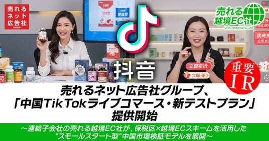 売れるネット広告社グループ株式会社(本社:福岡県福岡市、代表取締役社長 CEO:植木原宗平、東証グロース市場:証券コード9235、以下 売れるネット広告社グループ)は、連結子会社である株式会社売れる越境EC社(以下 売れる越境EC社)において、中国版TikTok「抖音(Douyin)」を活用した『中国TikTokライブコマース 新テストプラン』(以下 本プラン)の提供を開始したことをお知らせいたします。