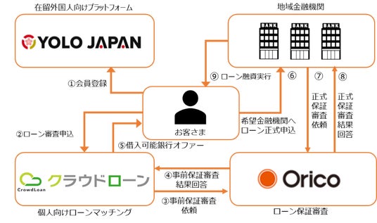 株式会社オリエントコーポレーション(東京都千代田区、代表取締役社長:梅宮 真、以下「オリコ」)、個人ローンのマッチングプラットフォーム「クラウドローン」を運営するクラウドローン株式会社(東京都新宿区、代表取締役:村田 大輔、以下「クラウドローン」)、在留・在日外国人向けライフサポートメディア「YOLO JAPAN」を運営する株式会社YOLO JAPAN(大阪府大阪市、代表取締役:加地 太祐、以下「YOLO JAPAN」)の3社は、在留外国人向けの金融サービス拡充するために連携をし、『YOLOパーソナルローンサポート』の提供を開始いたしました。