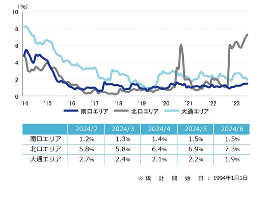 IT系企業を中心に新規開設等の前向きなオフィス需要が活発化しつつある。主要エリアの好立地のビルでは、引き続き小口の募集床が品薄な状況にある。<空室率&潜在空室率>
