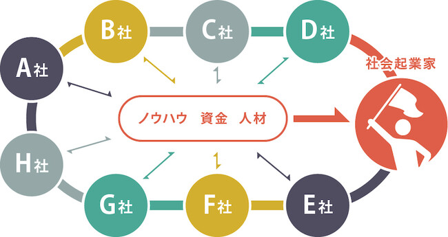 1つでも多くの社会課題を解決することを目的に、年間100のソーシャルビジネスを生み出すべく「恩送り」という独自の仕組みを取り入れています。資金・ノウハウを共有し、リスクなしで挑戦できるエコシステムです。
