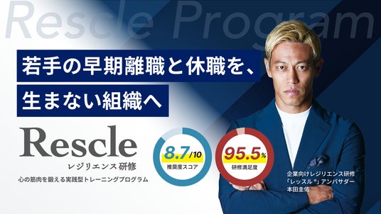 「レッスル(Rescle)」という言葉はレジリエンス(Resilience)とマッスル(Muscle)を掛け合わせた造語で「心の筋肉を鍛える」という意味が込められています。逆境や失敗をしなやかに乗り越え、それを成長の糧に変える力を組織的に鍛えるために、レジリエンス領域の第一人者である久世浩司氏の監修のもと、圧倒的な差別化を保有し開発されたのが企業向けレジリエンス研修 「レッスル(R)」です。