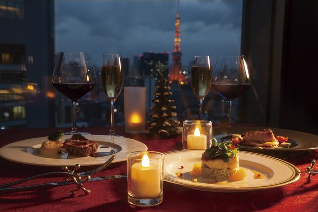 お部屋もレストランも東京タワービュー確約!豪華クリスマスディナーコース&ハーフシャンパンボトルを堪能 (夕朝食付)