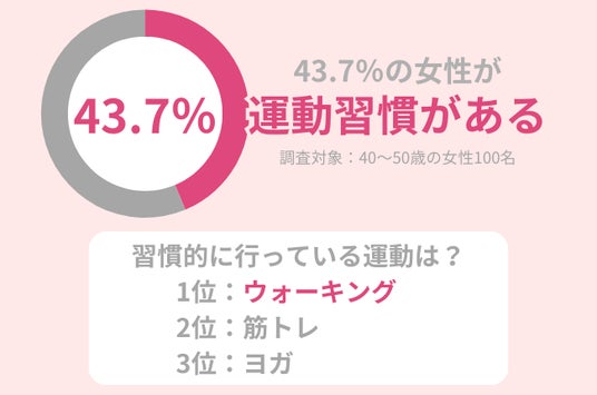調査の結果、43.7%の女性が習慣的に運動を行っており、ウォーキングや筋トレなどが人気であることがわかりました。