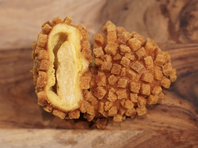 今回登場したのは、なんとこのザックザクカレーパンのスイーツバージョンです。見た目はいつものザックザクカレーパンですが、中はもったりとしたクリーム入り。2022年2月から順次発売しています。