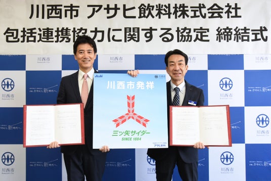 川西市・アサヒ飲料(株) 包括連携協定締結式の様子