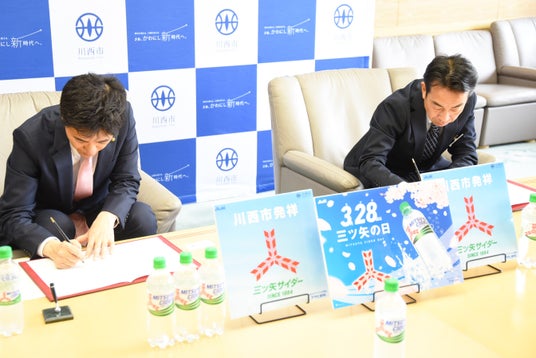 「三ツ矢サイダー」を通じた郷土愛の醸成を図ることを目的に、アサヒ飲料株式会社近畿圏本部(大阪市)と包括連携協定を3月28日(三ツ矢の日)に締結しました。