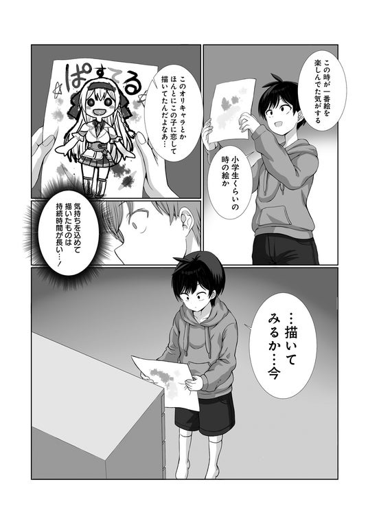 絵の専門学校で、神絵師への嫉妬と上達しない自分への苛立ちを覚えていた影彦。ある日、架道橋で思い悩んでいたら、通りがかりのおじいさんにぶつかられて…落下してしまう。目が覚めると…自分に「描いたものを実体化する能力」が付与されていることに気づく。そして…幼き頃に描いていた美少女・パステルとの劇的な再会から、人生が好転し始める――。
