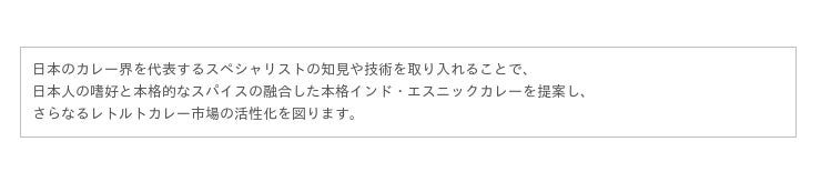 カレー作りのスペシャリストの知見と、当社の技術を掛け合わせることで、「日本人の嗜好に合わせた本格感のある味わい」と「化学調味料無添加」を実現しました。