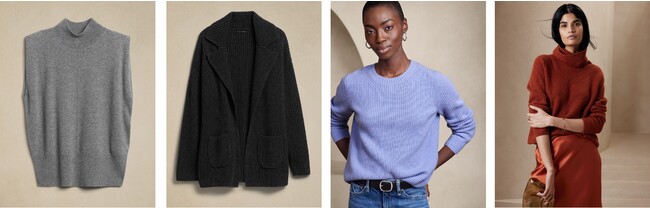 バナナ・リパブリックは、ベーシックカラーから秋らしいテラコッタやラベンダーなど豊富なラインナップで揃うカシミアコレクションがサステナブル素材で登場します。を展開しています。本コレクションは、全国のバナナ・リパブリックストア及び公式オンラインストア( https://bananarepublic.gap.co.jp/ )で販売を開始しています。