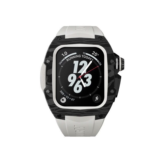 全体を覆うように装着されるケースは、一目ではApple Watch と分からない、非常に特徴的な外観を持っています。そのような外観を持っていながら、お手持ちのApple Watch に付属のネジを止めるだけで簡単に装着が可能です。また、バックケースは円形状にくり抜かれており、ケースを装着したままでの充電、ヘルスケアの機能にも配慮しています。