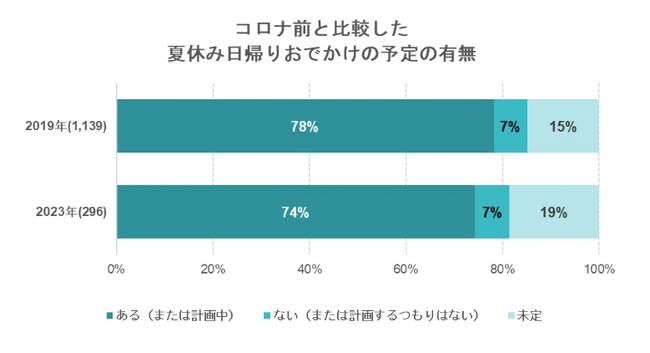 夏休みの日帰りおでかけの予定確定状況についても、今回と2019年の結果と比較しました。