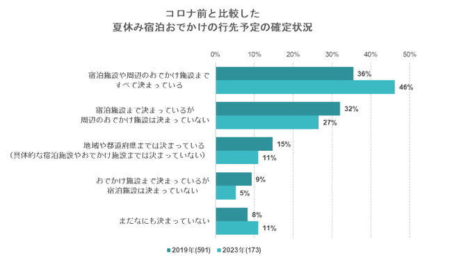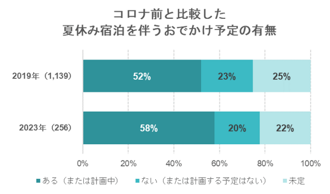 コロナ前と比較して今年2023年の方が夏休みの宿泊おでかけ予定が多い
