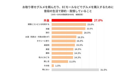 ・お取り寄せグルメを頼むために普段の生活で節約・我慢していることは「外食」が1位に。