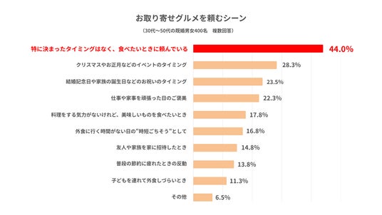 ・「お取り寄せグルメ」を頼むシーン1位は「特に決まったタイミングはない」。