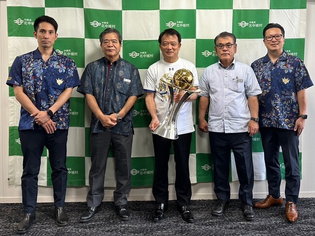 7月5日(水)に、比嘉孝則 北中城村長へBリーグ初優勝のご報告を兼ねた表敬訪問を行いました。表敬訪問では北中城村長や村役場の方々より多くのお祝いのお言葉をいただきました。